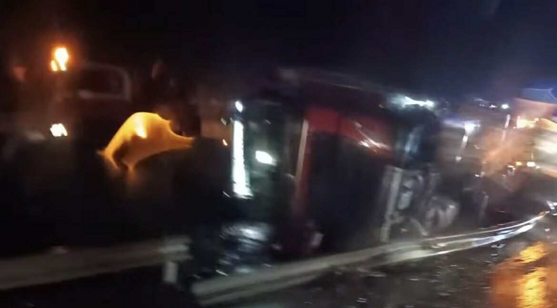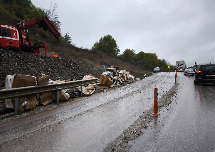ТИР е катастрофирал на скоростния път Ботевград-Мездра, научи агенция BulNews.