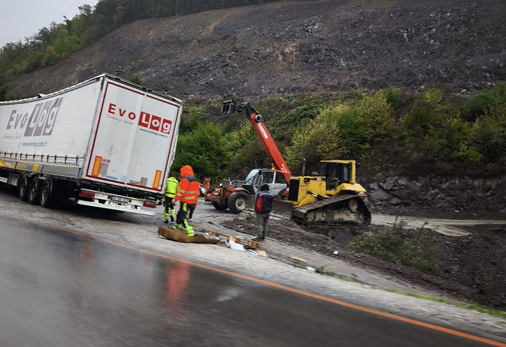 Извънредно! ТИР се обърна между Ботевград и Мездра, пътят е затворен /снимки+видео/
