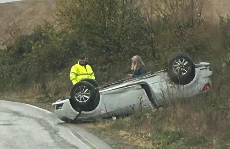 Дъждът ги почна! Кола се обърна по таван на пътя Враца-Криводол, движението е затруднено /снимки/