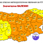 Обявен е оранжев код в 20 области на Северна, Централна и Източна България за интензивни валежи от дъжд и мокър сняг в северните и централните части на страната, и дъжд, и силен вятър в източните части. В 8 области на Западна и Североизточна България е обявен жълт код за обилни валежи от дъжд и мокър сняг, а в Силистра и Добрич от дъжд и силен вятър.