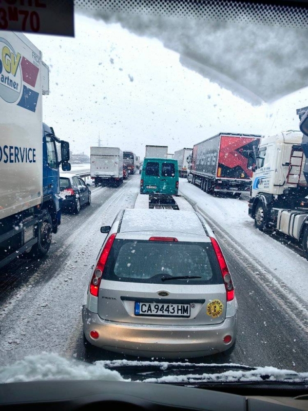 Пътуващи от и към столицата споделят, че има огромни задръствания по магистралата, които са и в двете посоки, като най-сериозно е положението при тунел "Витиня".