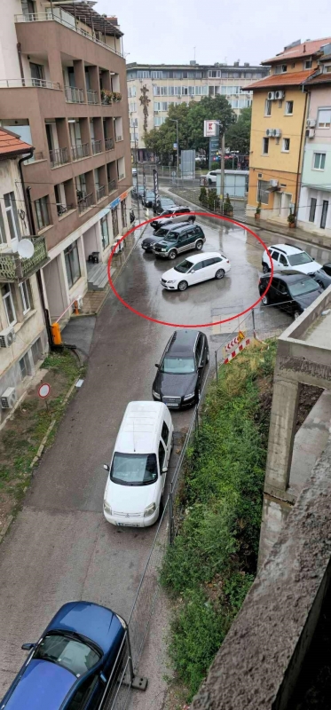 За нарушението алармира читател на медията ни, който изпрати снимка за доказателство. На кадъра се вижда как лек автомобил е зарязан насред малка уличка над хипермаркет „Кауфланд“.