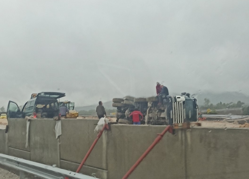 Извънредно! Работник се обърна с камион между Мездра и Ботевград по време на работа /снимка/