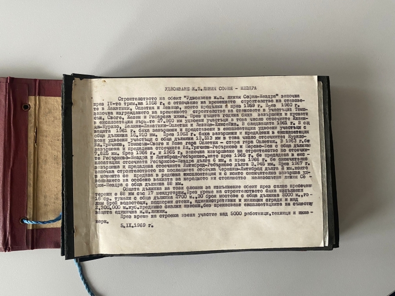 Другият фотоалбум съдържа 52 черно-бели снимки от изпълнението на един от най-сложните и мащабни проекти в развитието на железопътната инфраструктура у нас - удвояването на жп линията София - Мездра, реализиран през периода 1958-1969 г., придружени от уводен текст с дата: 05.09.1969 г., когато става официалното откриване на обекта.