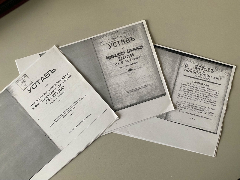 Любопитство будят също три ксерокопия на документи. Единият е Устав на Пчеларското дружество „Пчела“ в гара Мездра (1925 г.). Включен е и Устав на Православното християнско братство „Св. вмчк Георги“ в село Мездра, (Печатница „Стефан Христов“ - Мездра, 1934 г.), и Устав на Женското културно-просветно и благотворително дружество „Пробуда“ в гара Мездра (Печатница „Владимир Пършоров“ - Враца, 1934 г.).