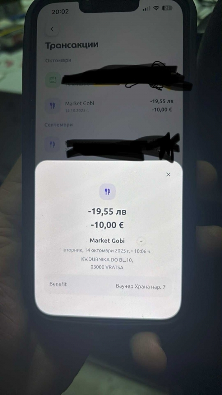 Мъжът разказа пред наш репортер, че на 25 септември той и съпругата му са пазарували за последно с картата ѝ с купони за храна и я загубили. Те решили да не я блокират, за да провери чрез приложението дали ще се направи плащане с нея. Едва миналия вторник платежното средство било използвано в търговски обект в ж.к. "Дъбника".