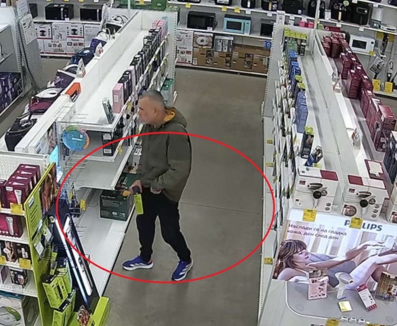 Случаят е от събота /18 октомври/. Около 15.30 часа двама мъже влезли в търговския обект в жк. „Дъбника“. Те обиколили магазина и единият започнал да задава редица въпроси на част от служителите. През това време „сръчният“ му авер взел да се ослушва край един от рафтовете с уреди, сякаш е на пазара и пробира по-пресните зеленчуци. Кадри от видеонаблюдението в магазина, с които медията ни разполага, показват как мъжът се спира на тример за брада. Явно обаче вместо да извади 200 лева и да го плати на касата, наглецът решил буквално да си направи подарък. От видеото се вижда, че необезспокояван, той взема кутията и я пъха под якето си. След това вади телефон и го слага до ухото си, правейки се, че си говори с някого.