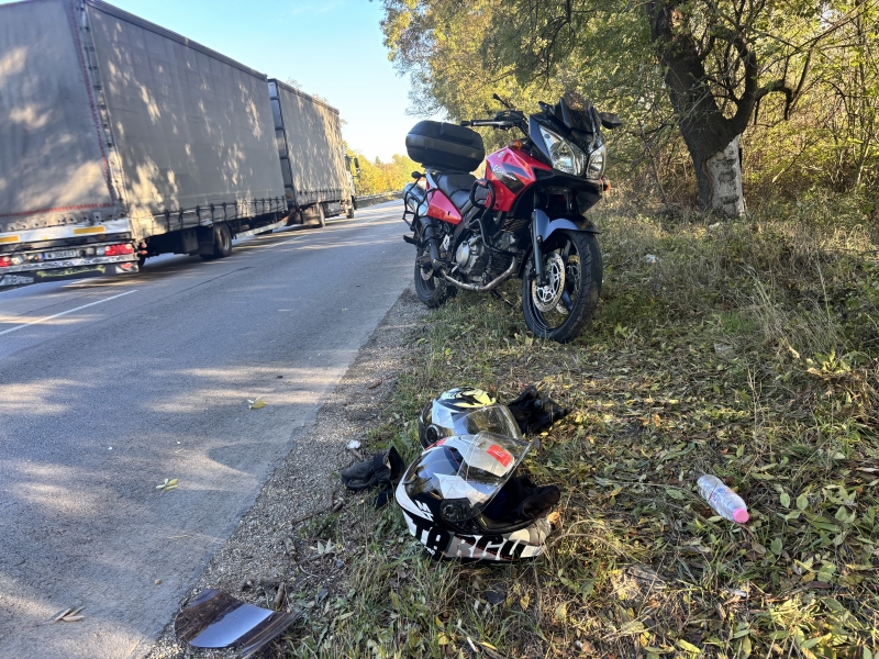 Инцидентът е станал малко след отбивката за село Руска бела. Камионът закачил моторът по време на изпреварване. След това водачът дори не спрял, за да се увери, че всичко е наред, а продължил необезпокоявано по пътя си.