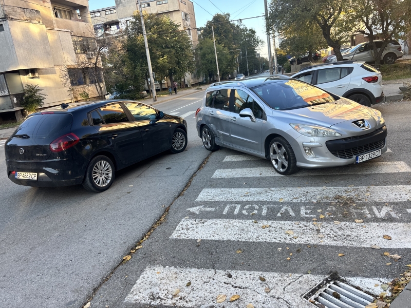 За щастие, водачите не са пострадали. Има нанесени материални щети, които са по дясната част на “Пежо”-то и по предницата на “Фиат”-а.