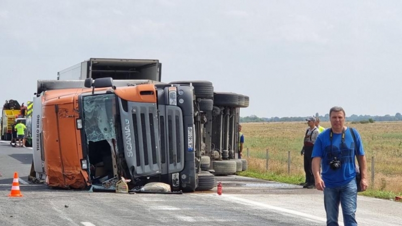 Тежкотоварен камион се преобърна на магистрала "Марица". Движението на платното при 23-и километър в посока Сливен беше спряно за няколко часа. Организиран беше обходен маршрут.