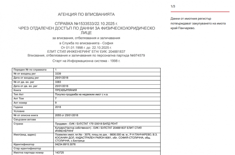 В същото време обаче фирмата през 2018 г. става собственик на апетитен актив - имот от 8,6 декара в район “Панчарево”.