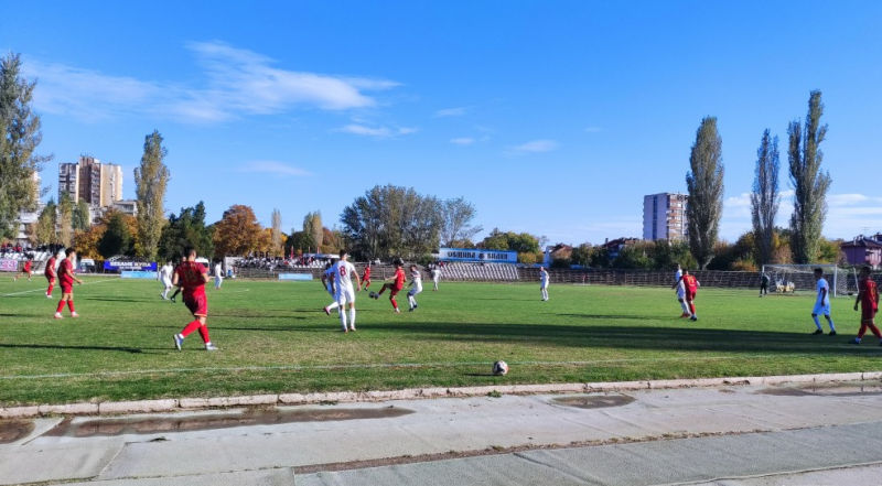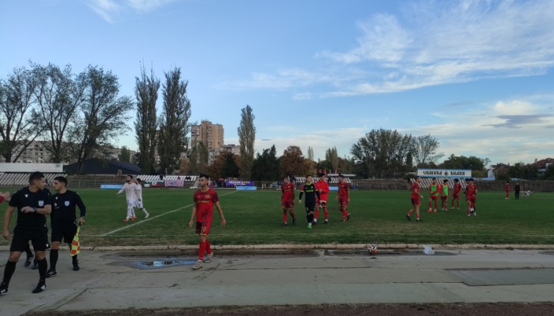 Гостите доиграха срещата с човек по-малко след червения картон на Борил Григоров в 85-ата минута.