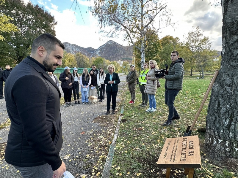 Николай Николов и председателят на Общински съвет - Враца д-р Владимир Христов, заедно с учениците от Випуск 2026 година на учебните заведения в града засадиха фиданки от традиционен български вид в “Алея на будителите“.