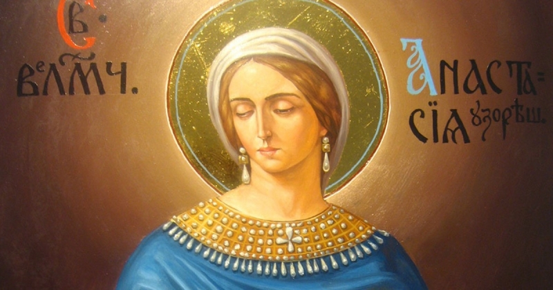 Православната църквата почита днес Света Анастасия Римлянка. Тя загубила родителите си, когато била на 3 години, и била отгледана от една стара мъдра жена на име София, известна с високото си благочестие. Когато Анастасия станала на 20 години, правела силно впечатление със своята чудна красота.