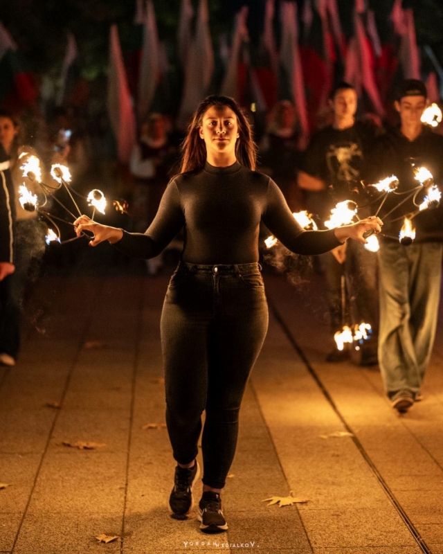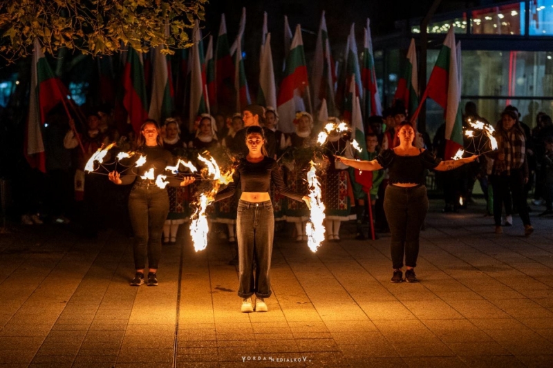 Празничната колона, състояща се от над 300 факли и LED светлини, премина по централната пешеходна зона на града и достигна до сградата на местната администрация, където се състоя тържествено честване на празника.