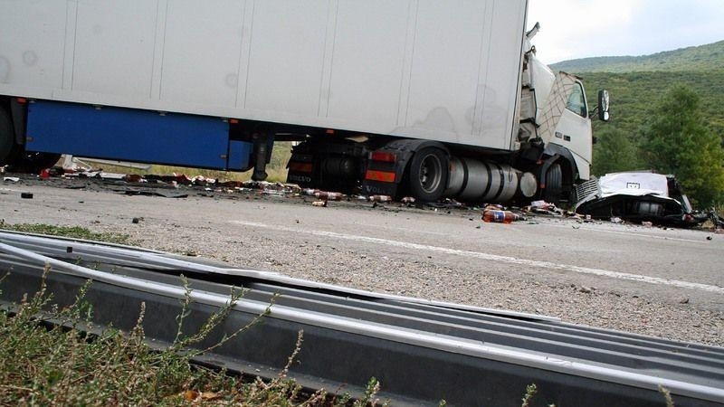От катастрофата са нанесени значителни материални щети по товарния автомобил, полуремаркето и металната ограда.