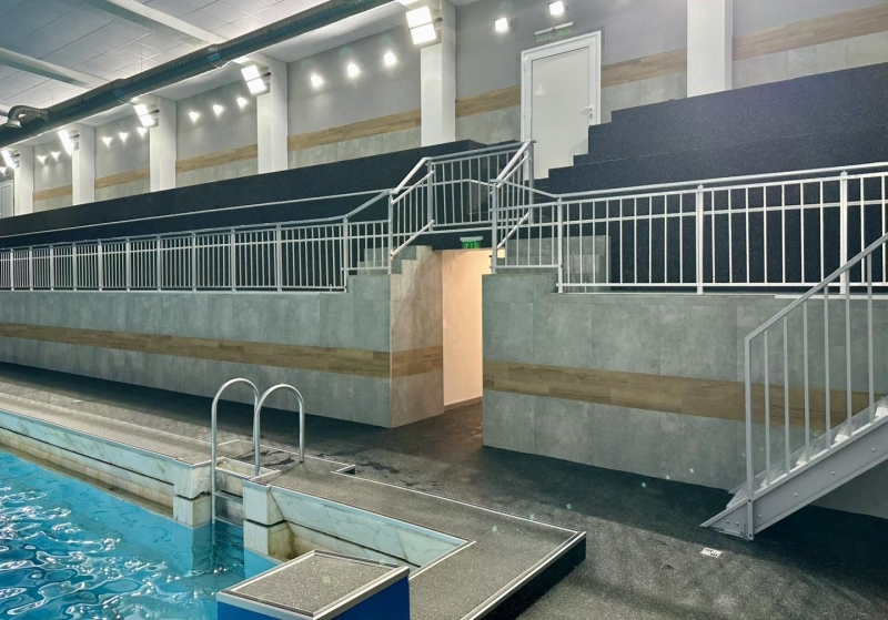 Вторият етап от проекта, реализиран с финансиране на стойност над 1 млн. лева, включва подмяна на настилките, обновяване на трибуните, тренировъчните зали и помещенията за треньори. Коритото на басейна е почистено, полирано и фугирано, а водопроводната и електрическата инсталации са изцяло подновени. В баните и съблекалните са монтирани нови душове и оборудване.