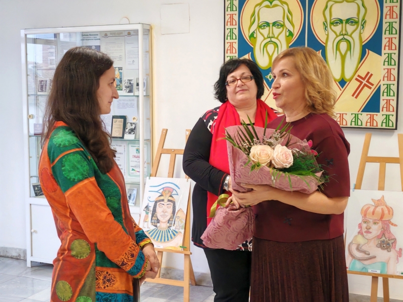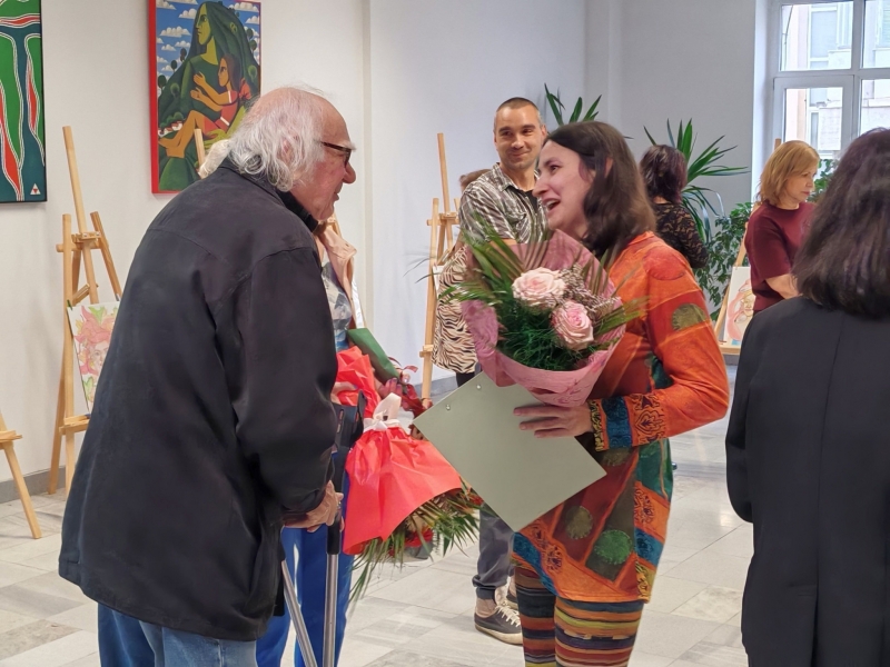 От името на Община Мездра Елена Нанова, директор на Дирекция „Социални дейности, образование и здравеопазване, култура, спорт и туризъм“, поздрави младата авторка с изложбата и й подари букет цветя. "Искам да Ви честитя откриването на изложбата, каза Елена Нанова. В този мрачен ноемврийски ден Вие озарихте нашето фоайе с много цвят, пъстрота и красота. Желая Ви здраве и нови творчески успехи!"