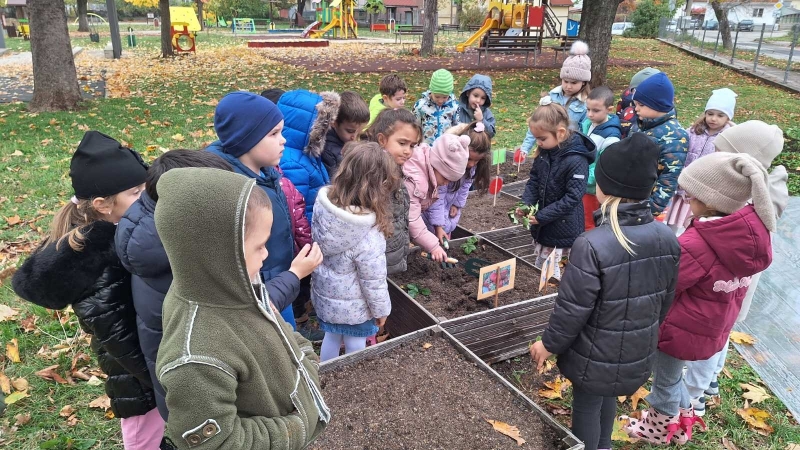Малките градинари от ДГ „Единство Творчество Красота“ засадиха есенни зеленчуци /снимки/