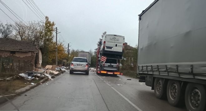 За добро утро: ТИР и автовоз се удариха в Монтанско, движението е затруднено /снимки/