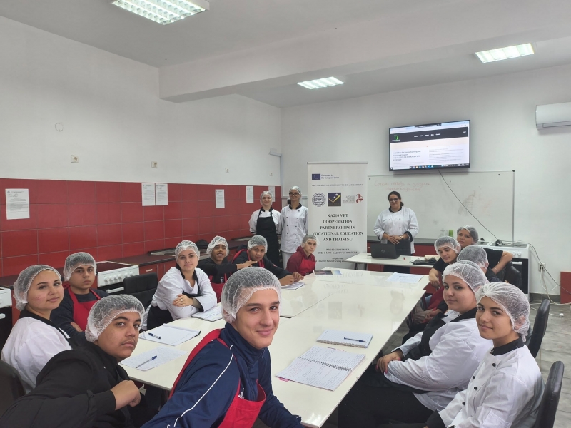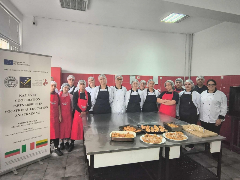 По време на специален час по УП „Кулинарни техники и технологии в кетъринга“ с преподавател инж. Цветелина Ангелова, участниците в мобилността представиха пред учениците от IX б и XI б класове - специалност „Кетъринг“ за наученото в Литва. Те демонстрираха приготвянето на двете традиционни рецепти, споделиха интересни факти за литовската кухня и обсъдиха значението на етичния подход към храната – от произхода на продуктите до тяхното сервиране.