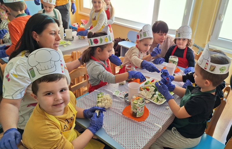 В детска градина „Единство Творчество Красота“ във Враца се проведе интерактивна работилница на тема „Есенна туршия“.