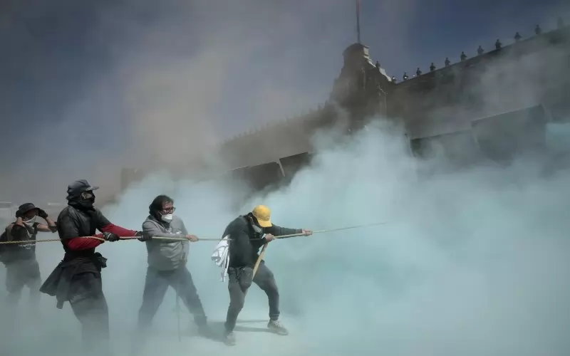 Демонтирани бяха части от бариера, защитаваща Националния дворец, където живее президента Клаудия Шайнбаум. Полицията, охраняваща комплекса, използва сълзотворен газ срещу тълпите.