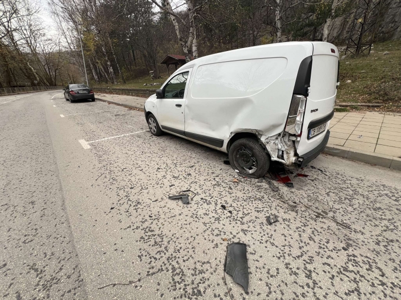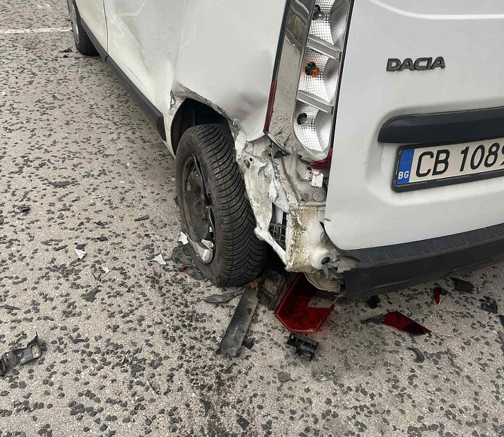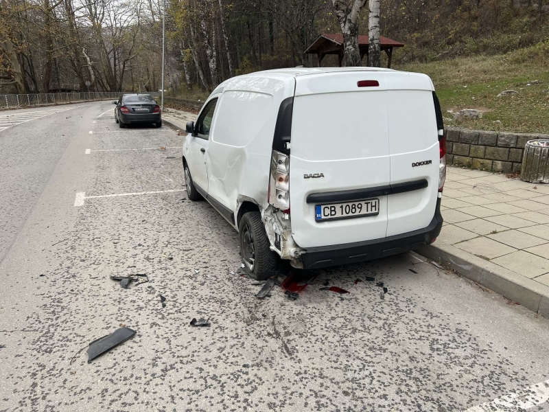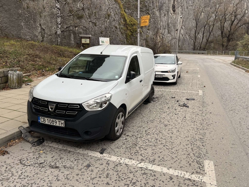 Веднага след това екип на медията провери на място случая. При пристигането си установихме лек автомобил „Дачия Докер“ със софийски регистрационни табели. Огледът ни показа, че баничарката е с материални щети само в задната лява част, като разпилени чаркове от колата има и по пътното платно.