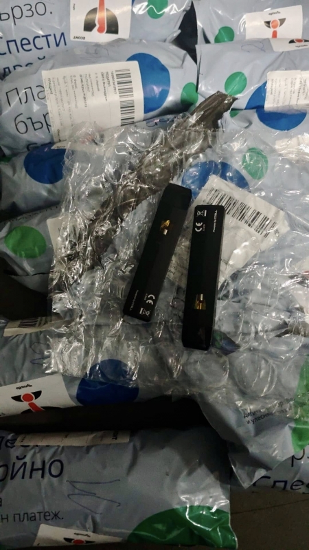 При предприетите действия по разследването са намерени и иззети още опаковани пратки с пълнители и електронни цигари, батерии, етикети, електронни устройства и флаш-памети, разписки, СИМ карти и др. веществени доказателства, имащи отношение към воденото производство.