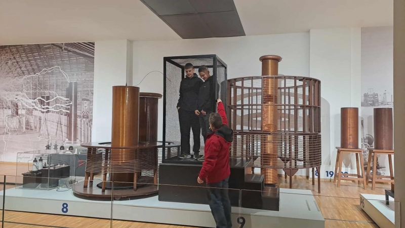 По време на посещението в Техническия музей „Никола Тесла“ учениците имаха възможност не само да се запознаят с наследството на великия изобретател, но и да участват в серия от интересни физични експерименти, част от които бяха свързани с емблематични идеи на Тесла – електрически полета, индукция, високоволтови разряди и демонстрации на принципите зад безжичната трансмисия на енергия. Темите включваха: Енергия и електричество, Безжична енергия и комуникации, Тесла и устойчивото развитие. Участниците работиха по три STEM работни листа, които им помогнаха да осмислят научните принципи зад представените експерименти.