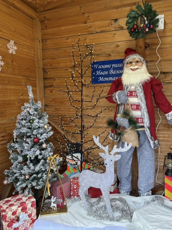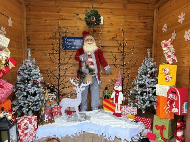 На площад „Жеравица“ в Монтана дървена къщичка, преобразена в духа на коледните празници и зимната магия, радва жителите и гостите на града от вчера.