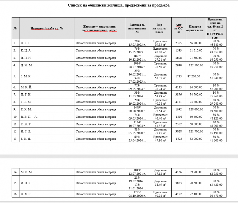Община Враца обявява продажба на 16 общински жилища, научи агенция BulNews.