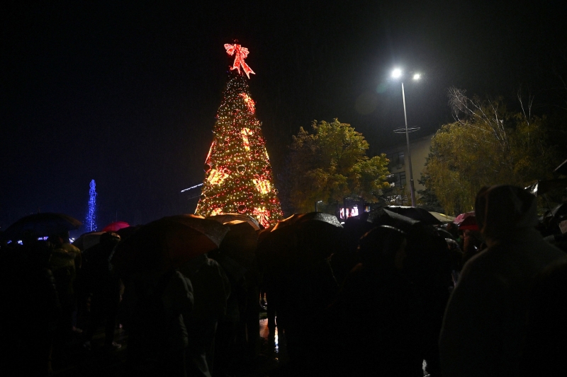 Въпреки лошото време и дъждът, който се изливаше, града засия с новата си украса и празничния спектакъл, който местната администрация беше подготвила за всички жители и гости.