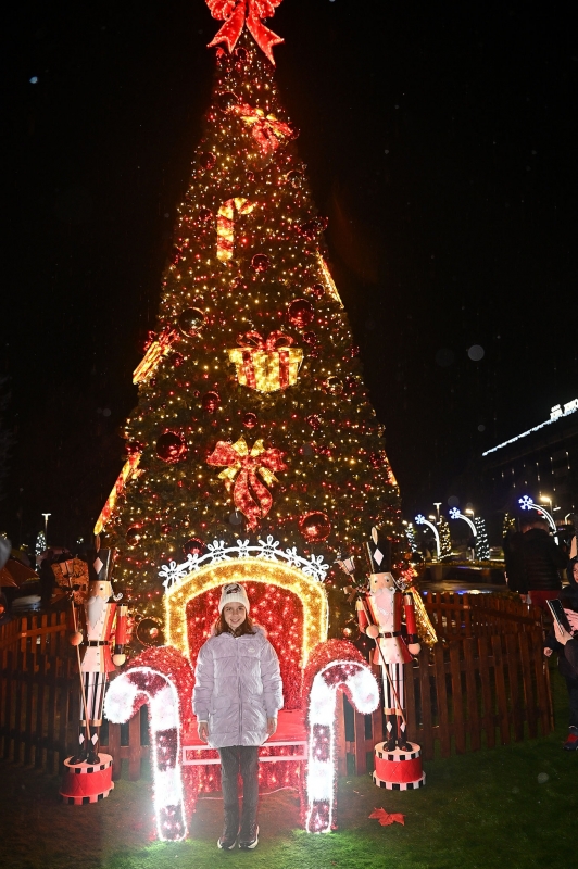 А след това новите светлинки на коледното дръвче засияха. Тази година елхата е разположена пред фонтаните и пред нея ще бъде поставен тронът на Дядо Коледа, а от двете му страни – фигури на лешникотрошачи, оформящи красив кът за снимки, който ще радва малки и големи през целия декември.