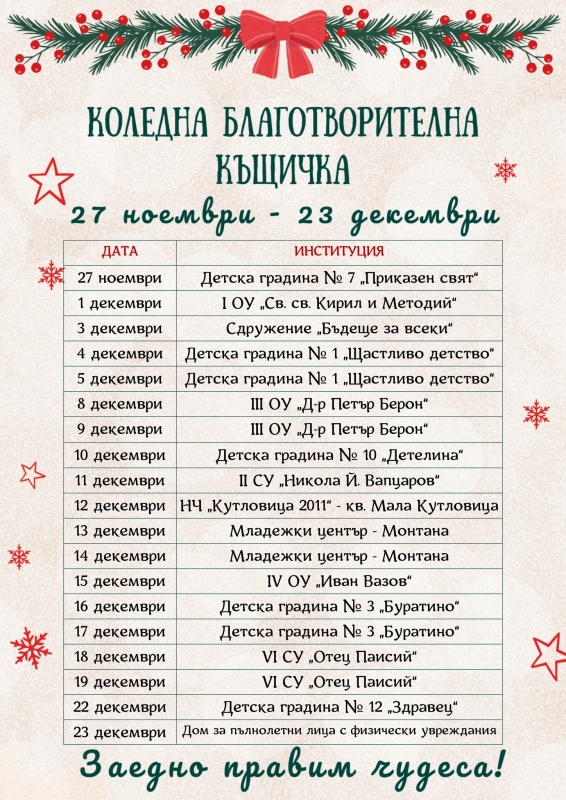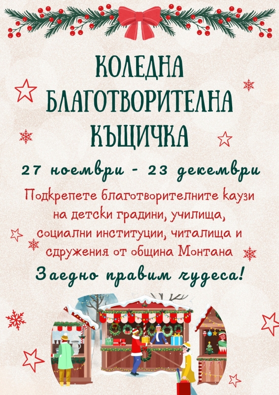 На 27 ноември стартира инициативата на Община Монтана за Коледна благотворителна къщичка. Това съобщиха от местната администрация.