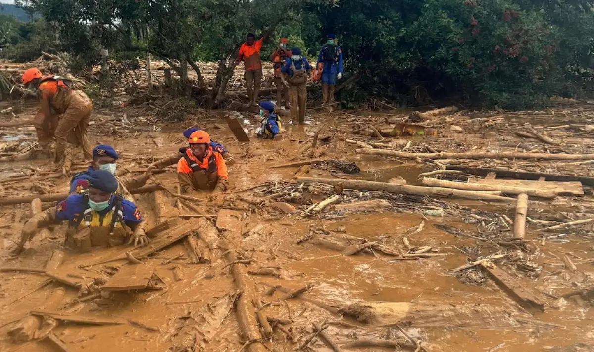 В Индонезия екипите за помощ използват хеликоптери, за да доставят храна и вода на откъснати общности на остров Суматра, където свлачища и наводнения опустошиха три провинции.