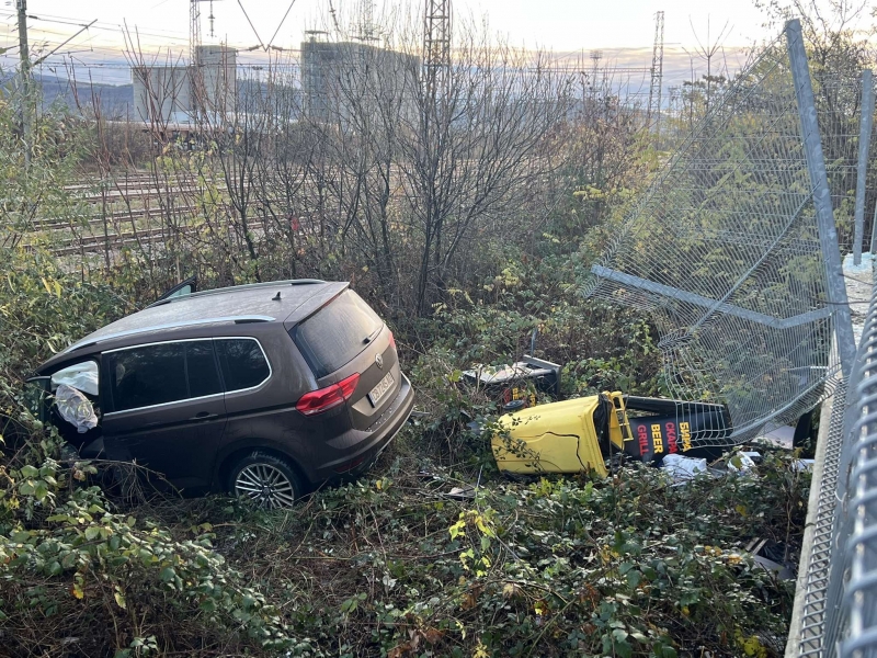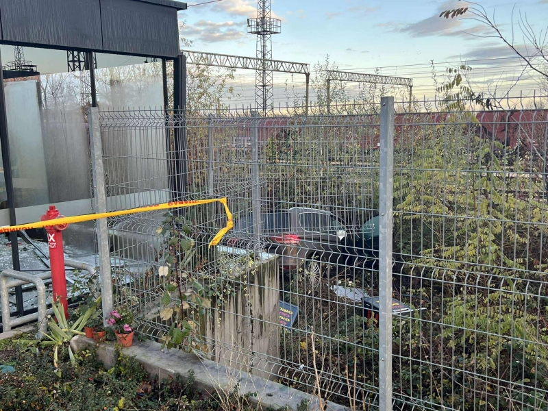 Колата е влетяла с такава скорост в обекта, че е преминала през него, бутнала е мрежата и се е спряла край жп линията, която се намира зад закусвалнята.