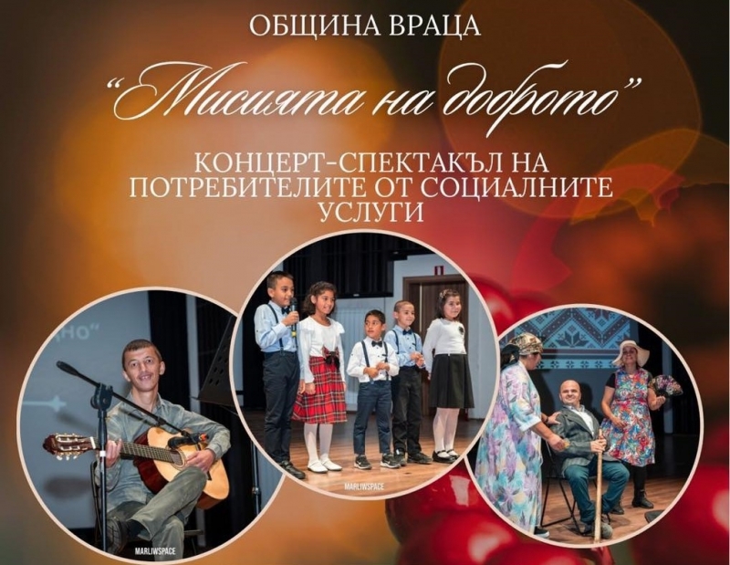 Община Враца кани всички гости и жители на града на вдъхновяващ концерт-спектакъл. Събитието е под наслов „Мисията на доброто“ и е подготвен от потребителите на социалните услуги в града под Околчица.