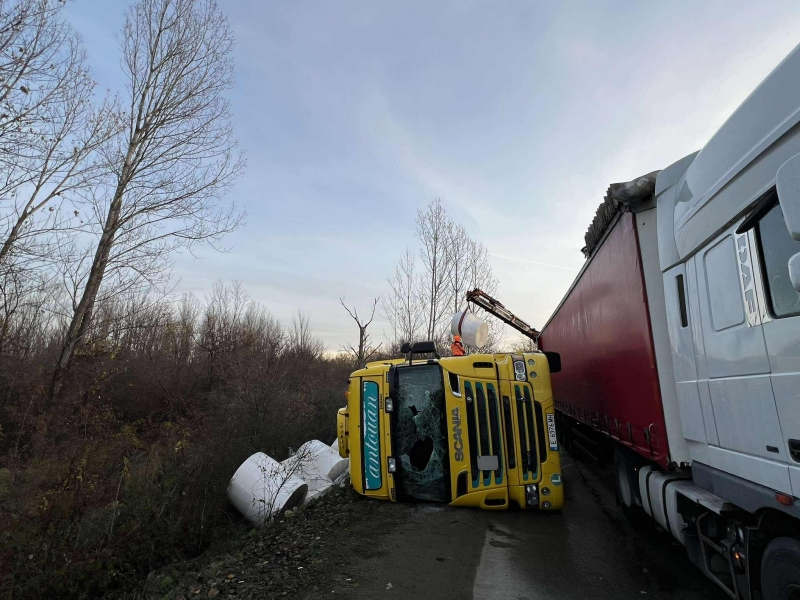 Произшествието е станало преди около час. Камионът, който е с благоевградска регистрация, пътувал в посока Монтана. Изведнъж, по неясни към момента причини, шофьорът му изгубил контрол над неговото управление. Вследствие на това тежкотоварната машина излязла от пътя и се обърнала в канавката.
