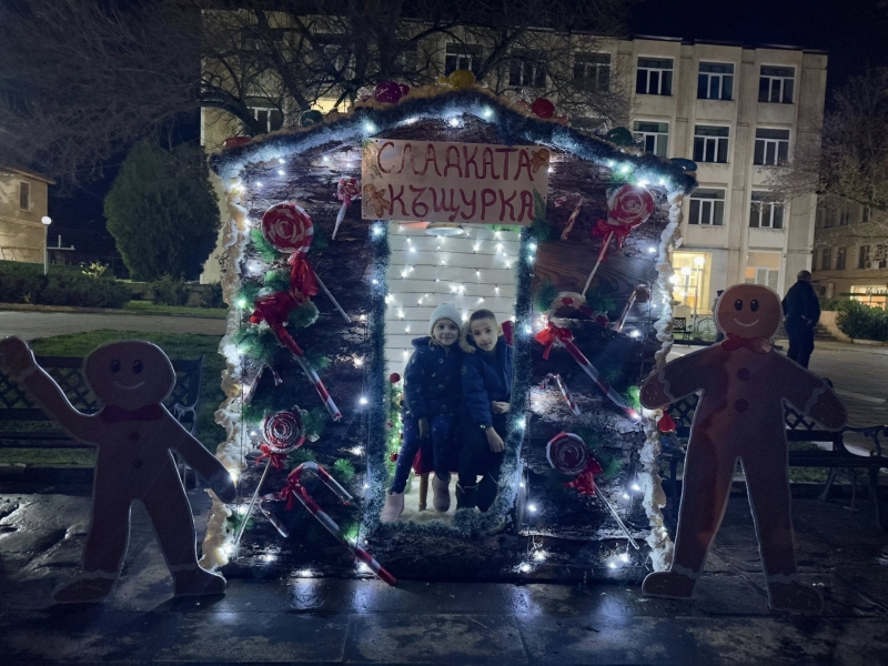 Фотокътът „Сладката къщурка“ се превърна в притегателно място за малки и големи - пространство за снимки, смях и създаване на спомени. За децата бяха подготвени лакомства, топъл шоколад и чай, а за възрастните - ароматно греяно вино, което внесе уют в студената вечер.