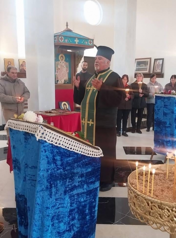 Отец Васил освети рибения курбан, никулденската питка във формата на риба, икони, донесени в храма от вярващи и благослови всички присъстващи.
