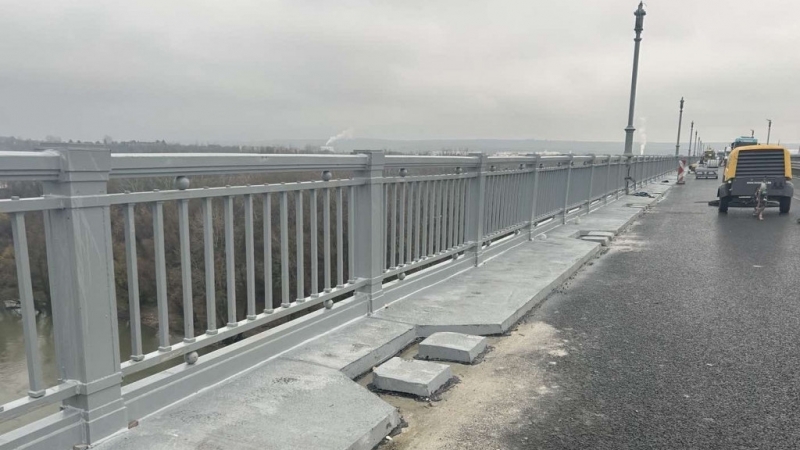Монтирани са парапетът и стълбовете за осветление в затворения за основен ремонт 320-метров участък на Дунав мост при Русе. В платното в посока Румъния приключи и полагането на защитното покритие по тротоарния блок и ремонтът на гребеновидните фуги в участъка.