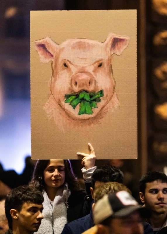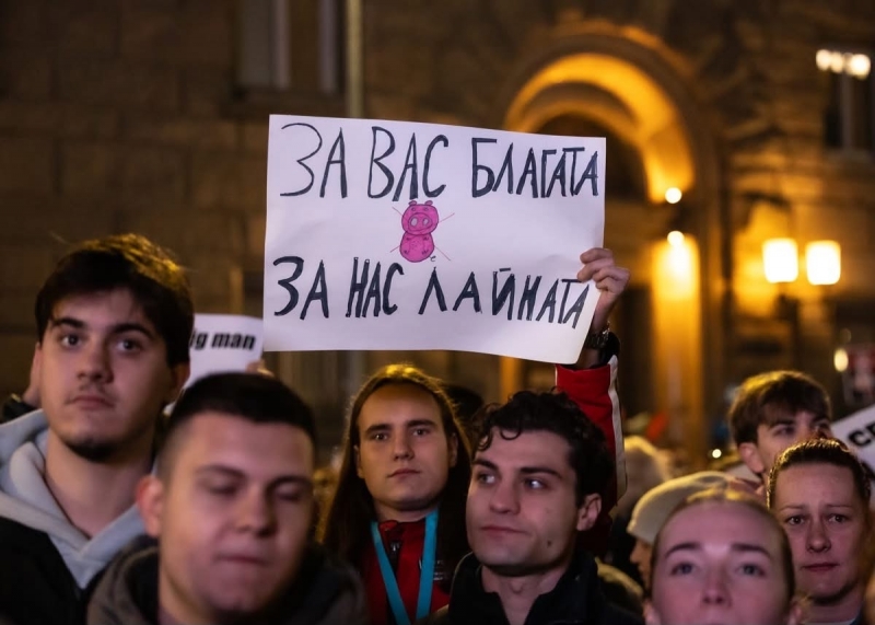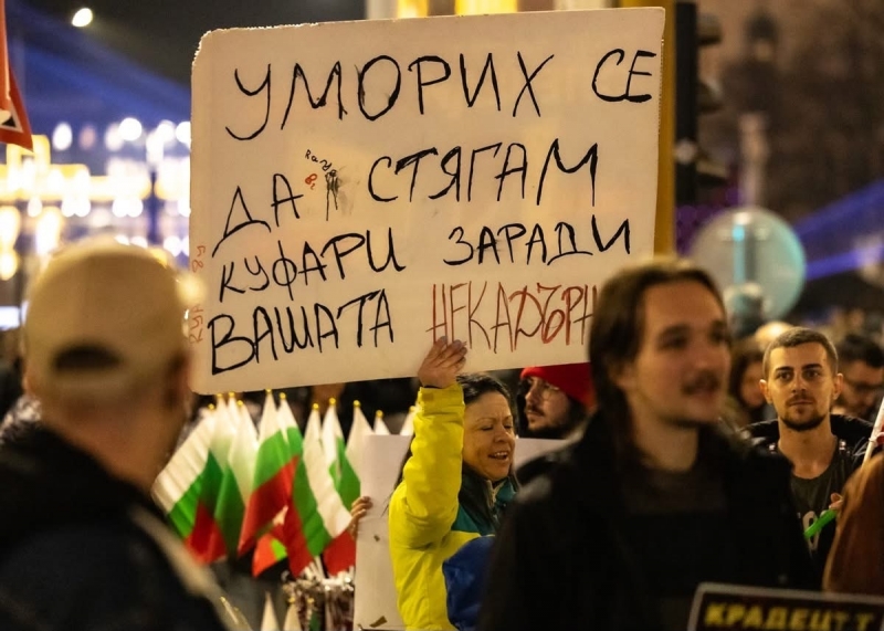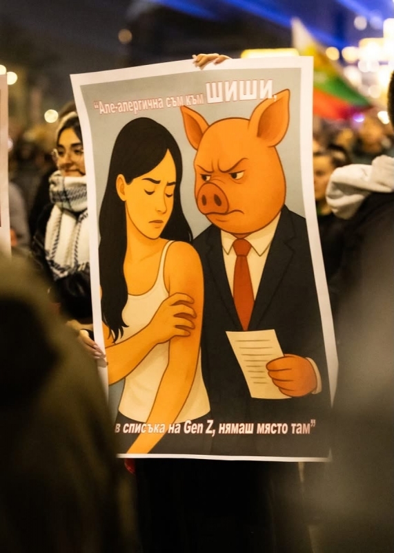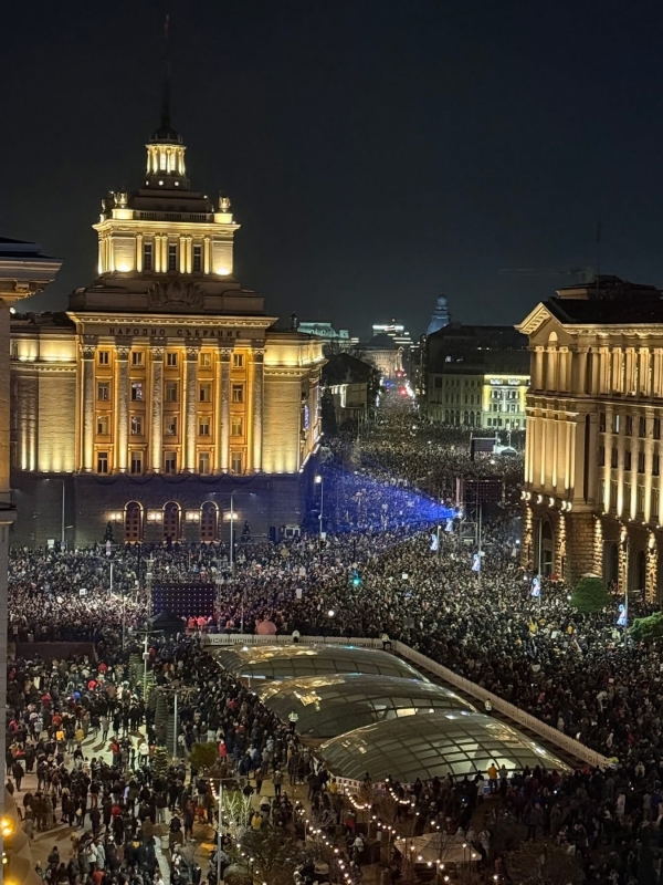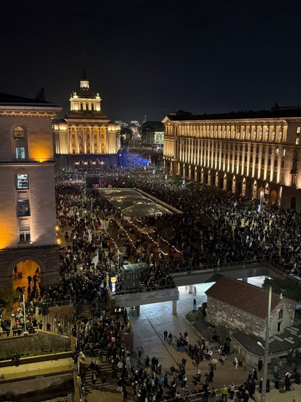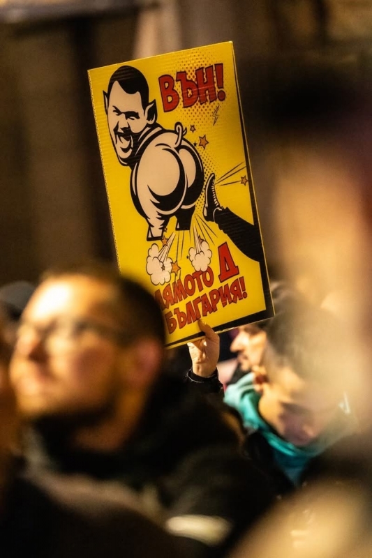 В центъра на София - "Триъгълника на властта" и площад "Княз Александър I" отново се събраха хиляди недоволни от управляващата коалиция и подготвяния държавен бюджет за 2026 г. В морето от плакати и колажи преобладават образите на лидера на ГЕРБ Бойко Борисов и този на ДПС-НН Делян Пеевски, като повсеместно се настоява за оттеглянето им от властта.