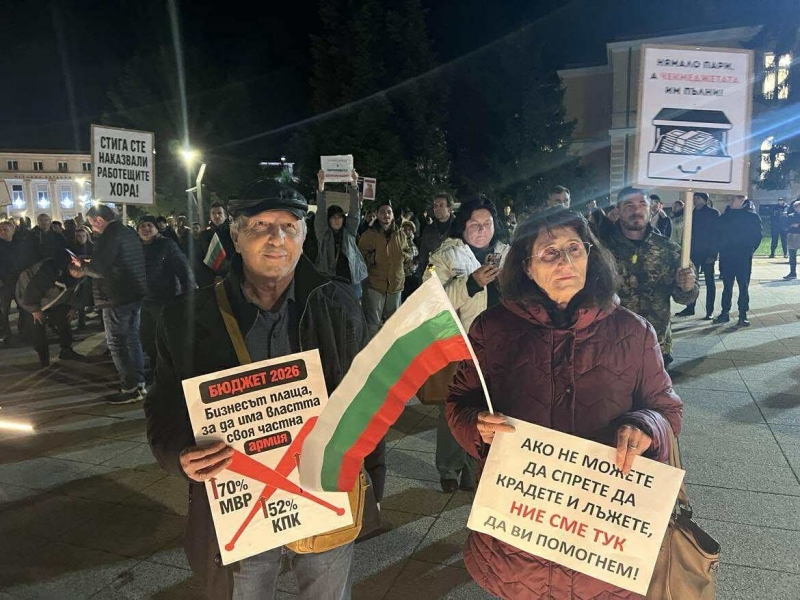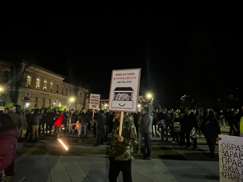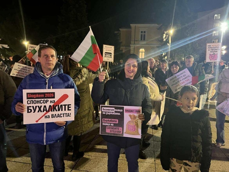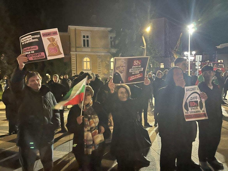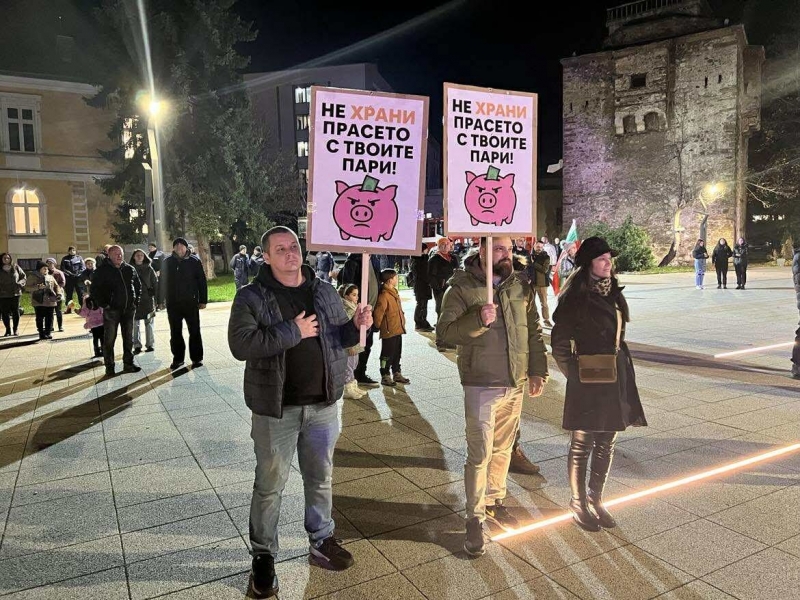 "ВЪН мутрите от политиката", "Не храни прасето с твоите пари", "Бюджет 2026 - спонсор на бухалките" бяха част от плакатите, които държаха протестиращите във Враца.