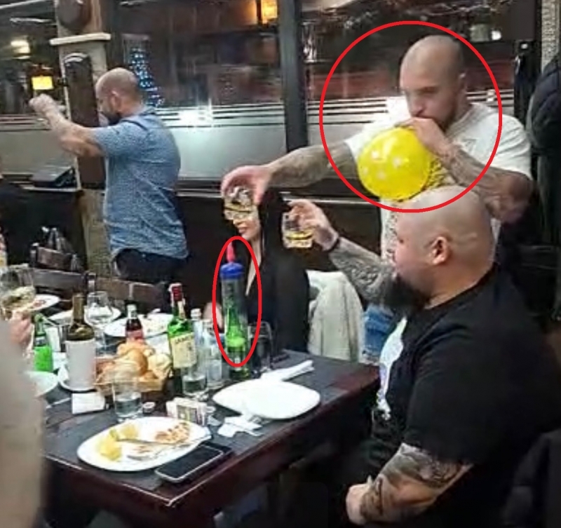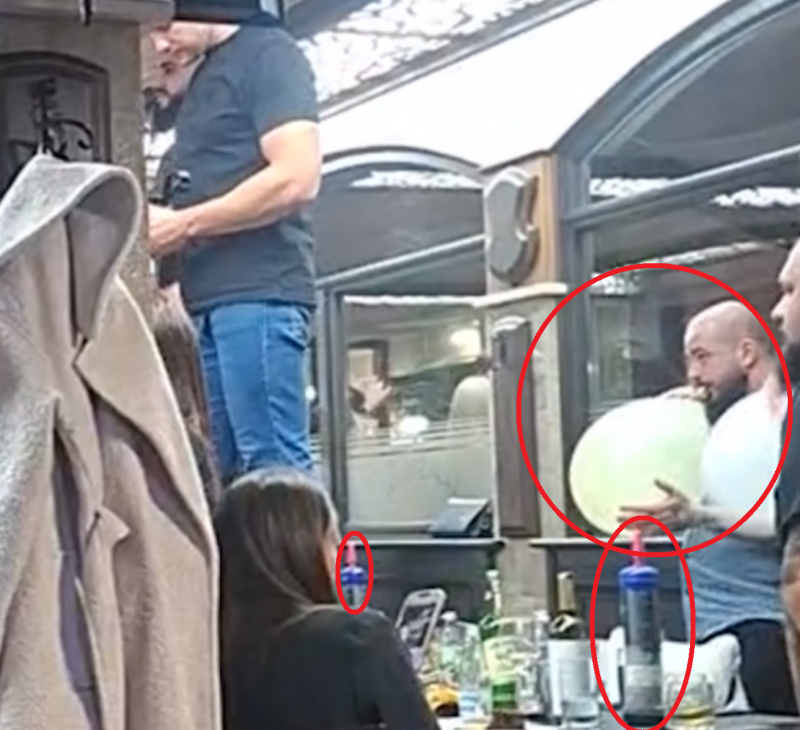 Две седмици по-късно се появиха снимки, които показват атмосферата на това мило тържество. От тях ясно се вижда, че почти всички дишат балони с райски газ. В България флаконите с диазотен оксид са забранени за продажба, но очевидно това не е била пречка по време на купона да има в изобилие на масите.