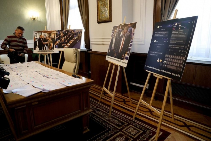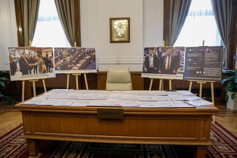 Лидерът на „ДПС-Ново начало“ Делян Пеевски покани журналисти в кабинета си, където показа снимки и разпечатки от – както обясни - съвместната си работа с ПП-ДБ, за която сега от партията опитвали да отрекат, че се е случила.