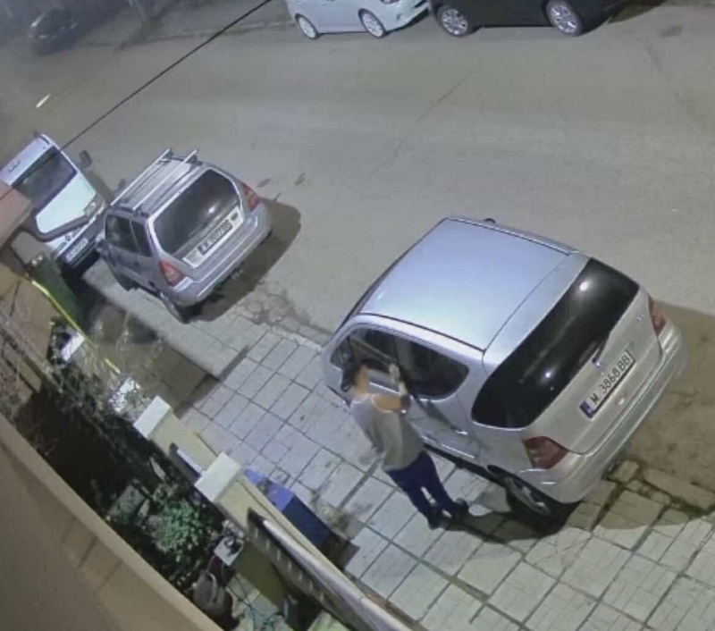 Камери за видеонаблюдение в района са заснели извършителя. Кадрите показват как младеж по потник върви в мразовитата нощ по улица в града. Той спира до колата, оглежда се, след което просто се качва в нея и тръгва.
