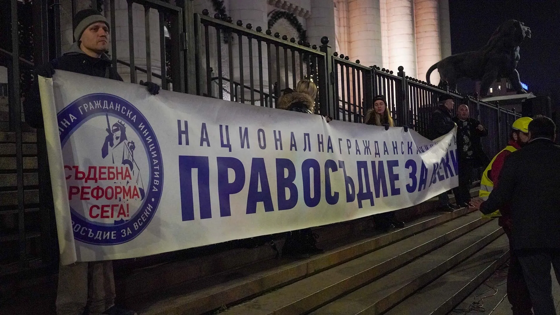 Към 18 ч. в четвъртък хора започнаха да се събират на протест и пред Съдебната палата - срещу и.ф. главен прокурор Борислав Сарафов. Демонстрациите са организирани от Инициативата „Правосъдие за всеки”.