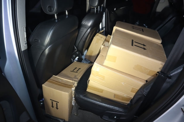 В условията на неотложност разследващи извършили претърсване в колата. Там открили и иззели 10 кашона с общо 57 флакона по 666 грама диазотен оксид (райски газ) и найлонов плик с 63 пластмасови накрайници.