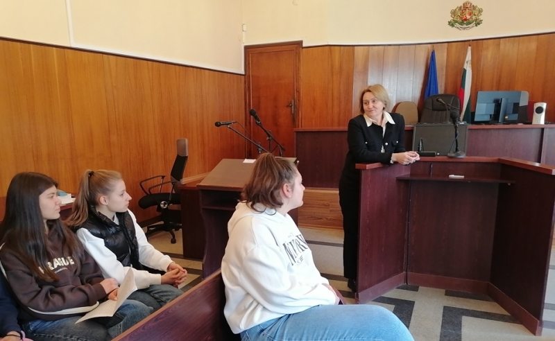 Гостите бяха приветствани от Петя Вълчева - зам.-председател на Окръжен съд – Враца. Срещата се проведе в съдебна зала № 1, като в началото г-жа Петя Вълчева, която е наказателен съдия, изнесе кратка беседа за разделението на властите в България, за видовете дела, които се разглеждат в съдилищата и запозна учениците с местата в залата на участниците в съдебните процеси.